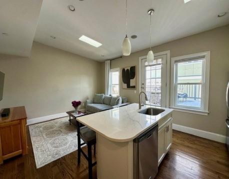 This bright and spacious condo is filled with natural light thanks to oversized windows, 9-foot ceilings, skylights, and a glass door that opens to your own private deck. The open living area flows seamlessly into a newly renovated kitchenperfect for hanging out or entertaining. Youll also enjoy a generously sized bedroom with a large closet and a sleek bathroom featuring a Carrara marble shower and in-unit washer/dryer. Located just off Broadway, youre steps from great spots like Loco, Lincoln, and Capo, making it easy to enjoy the neighborhood. Available for leases starting anytime between 5/15 and 6/1.