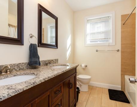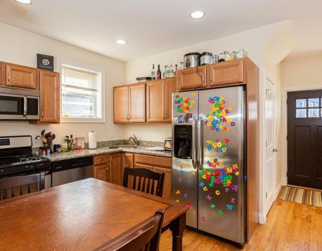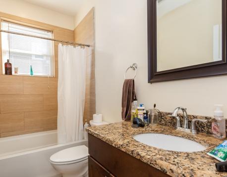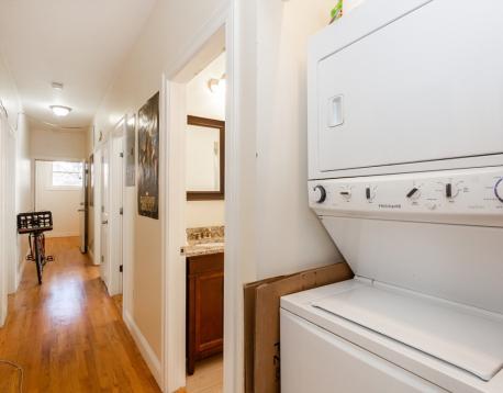 Newly constructed -spacious and modern 4 bedroom apartment. Beautiful well kept home has a open layout with great living area. Very functional modern kitchen with granite countertops, cherry cabinets, and stainless steel appliances. 2 large modern bathrooms, one of which has a double vanity makes it easy for roommates to share. Rooms are all about equal size. There is in-unit laundry, central AC, a private rear deck, and best of all there is an attached garage parking spot included in the monthly rent.