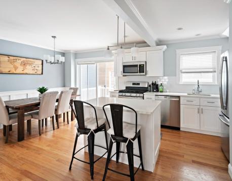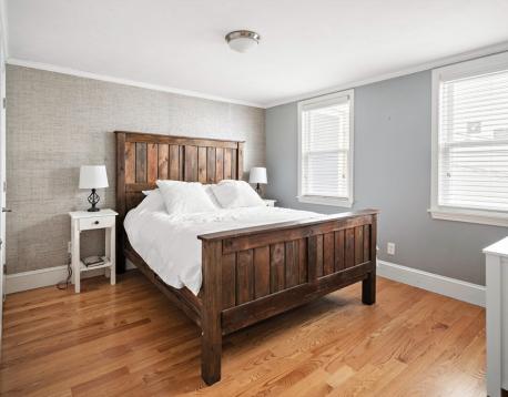 AVAILABLE JUNE 1. This newly renovated single family home features a spacious, sun-filled living room with gas fireplace that flows into an updated kitchen with ample counter space, island seating, and stainless steel appliances. A separate dining area and large pantry add convenience. Sliding glass doors lead to a private patio - your own city oasis! Upstairs are two generously sized bedrooms, each with excellent closet space and en-suite baths. A massive unfinished basement offers exceptional storage, a rare city find. Ideally located near Tatte, PKL Boston, Castle Island Brewing Co., and the shops and restaurants of West Broadway, this rare single-family rental is a standout opportunity in South Boston.