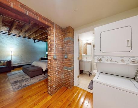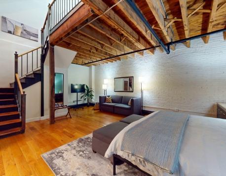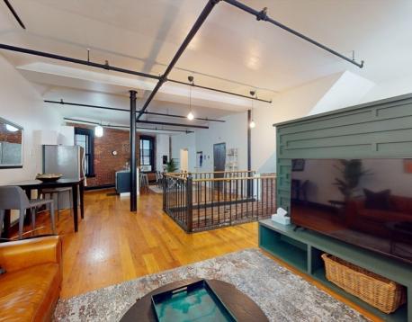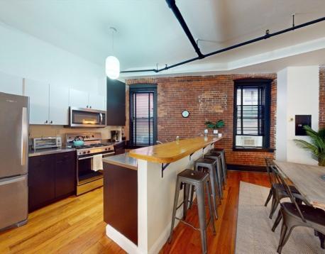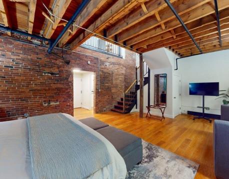 FULLY FURNISHED, SHORT OR LONG-TERM, UTILITIES, WIFI & LIVE STREAMING TV INCLUDED Welcome to Destiny Lofts, Tea Party Suitea sophisticated urban retreat in Boston's Back Bay between Clarendon and Berkeley Street. Just a block from Copley Square and 0.2 miles from Back Bay Station.This chic bi-level industrial loft features exposed brick, soaring wooden-beamed ceilings, and hardwood floors throughout. The first floor offers an open kitchen with gas cooking, stainless countertops, breakfast bar, dining area, living room with leather sofa and 65" TV, plus office/second bedroom with Murphy queen bed and full bathroom.Lower level includes spacious primary suite with king bed, walk-in closet, TV, sitting area, full bathroom, and laundry. $350 Cleaning Fee at end of the lease. (WSR Broker of Record - Adele Lurie)