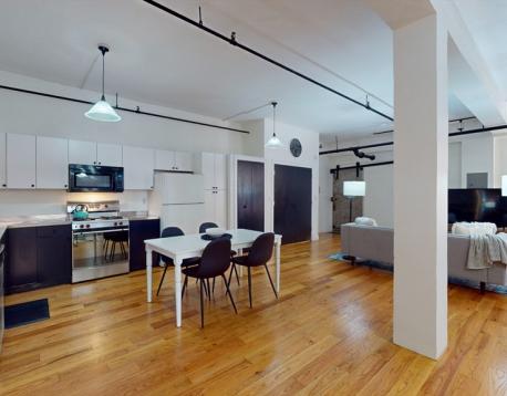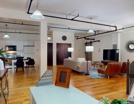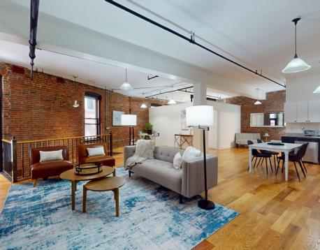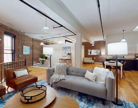 FULLY FURNISHED, SHORT OR LONG-TERM, UTILITIES, WIFI & LIVE STREAMING TV INCLUDED Welcome to Destiny Lofts' Garden Suite, your sophisticated urban retreat in the heart of Boston's Back Bay, nestled between Clarendon and Berkeley Street. Just a block from Copley Square and a short 0.2-mile stroll from Back Bay Station, this location is a haven for walkers and transit riders alike.This expansive one-bedroom loft boasts soaring beamed ceilings, exposed brick, and an open-concept layout. The living area includes a stylish couch, two lounge chairs, a large flatscreen TV, and a dedicated office nook.The well-equipped kitchen features stainless steel countertops and modern appliances, complemented by a dining area that seats four.The bedroom features a queen-sized bed, dresser, and double closet.This unit provides convenient in-unit laundry facilities and is pet-friendly. (WSR Broker of Record - Adele Lurie)