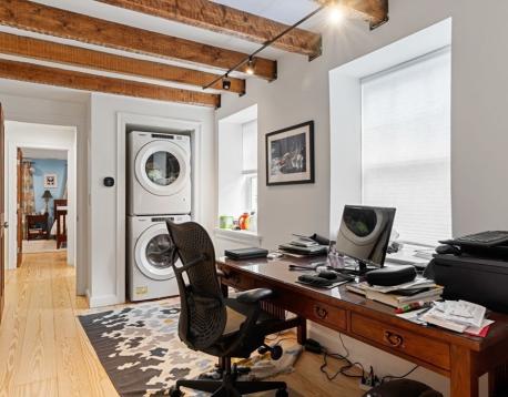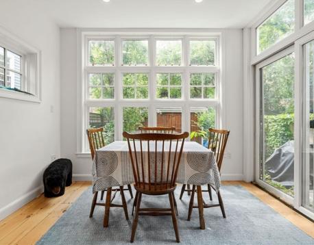 Situated steps from highly sought after Thompson Square is a fully renovated attached single family residence surrounded by mature planting and a picturesque landscape. This historic home has been outfitted with every modern amenity without interrupting its classic nature. The entry level offers a living room, two dining areas, powder room and an enormous cooks kitchen with direct access to a spectacular fenced in yard. The second floor provides a guest bedroom, full bath and the primary quarters with multiple closets, stunning windows lines, vaulted ceilings, a separated work study and spa like bath. Make your way to the top floor where you come upon two additional guest rooms, a third full bath and walk out access to an expansive rear sun deck. A home that must be seen to appreciate it's tranquil beauty and history.
