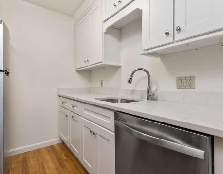 Updated and move-in ready corner unit ideally located on the third floor in a professionally managed elevator building close to all the North End has to offer. This spacious 2 bed, 1 bath home totals 800 square feet and consists of two bedrooms with ample closet space, living room with slider to your private deck, updated kitchen with quartz counters, white cabinets and stainless steel appliances, large dining area and an updated full bathroom. Other features include central A/C and hardwood floors throughout. The building features common laundry rooms on the 2nd through 5th floors. Heat, hot water and A/C included in rent. Tenant responsible for move in fee ($250). No smoking and no pets. Unit currently leased through June 30, 2026. Photos are from before the current tenants moved in.