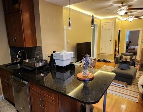 Available Dec 1st! Renovated and spacious 2 bed / 1 bath apartment located in the heart of the Jeffries Point neighborhood in East Boston. This first floor features an updated kitchen with wood cabinets, stainless steel appliances, stone countertops with an island leading to an open living/dining room, spacious and equal sized bedrooms located at the front and back of the unit, a tiled bathroom with tub, high ceilings with recessed lighting, central AC/heat, hardwood floors, shared coin-op laundry in basement. Pets negotiable. Location is super convenient with a short walk to Maverick T Blue Line stop with direct access to Downtown Boston, next to the Greenway Park and Waterfront for outdoor activities, and great restaurants/convenience stores nearby.