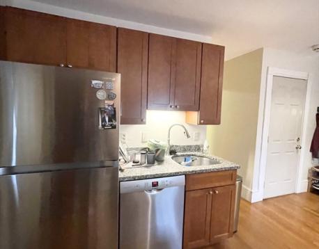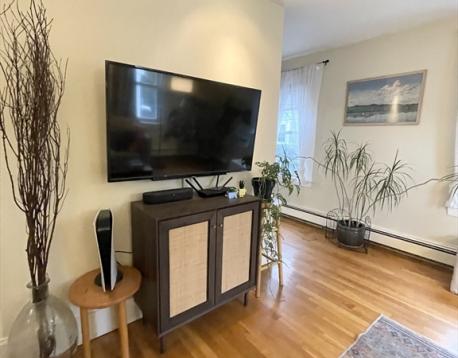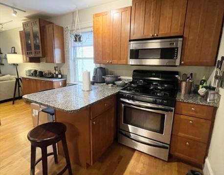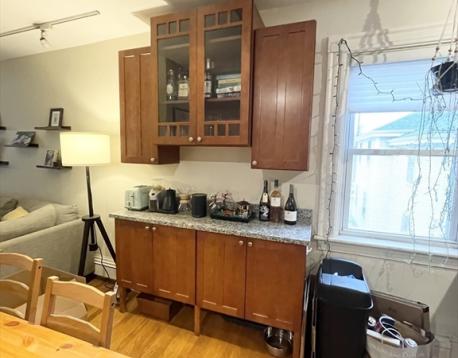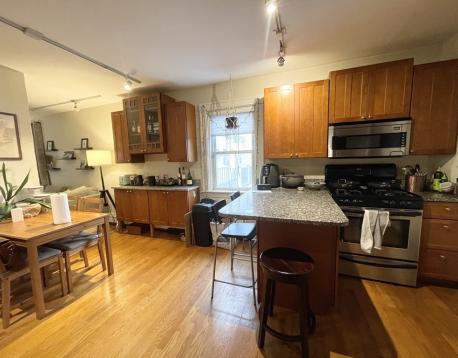Spacious and bright 2 bedroom. Floor through unit has bedrooms on opposite ends of the home. Spacious living space flows from the updated kitchen with breakfast bar seating to the dining room with built in buffet cabinetry for additional storage to the living room. Free laundry and deeded storage room in the basement. Three unit building. One deeded parking spot. Porch area off the kitchen door perfect for morning coffee. Pet friendly. This units location is convenient for area restaurants, shops, Longwood Medical area.
