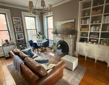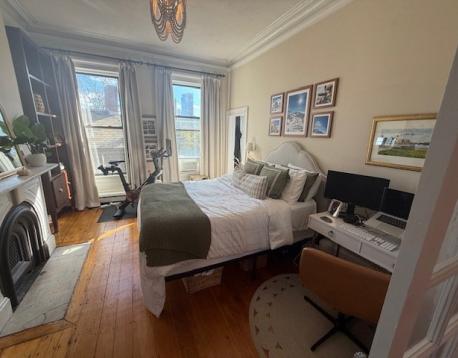 Prime Town Hill Location. Brownstone, Large One Bedroom on the second floor offering amazing views of the Zakim Bridge and the Boston Skyline. Open Livingroom & Diningroom with 12 ft ceilings and two original marble fireplaces. Custom built Maple Kitchen with Granite Counters & Miele Cooktop, dishwasher and disposal. Oversized Bedroom with Marble Mantel and great closet space. Custom built-ins in every room, great storage. Beautiful Cornice Moldings. Heat & Hot Water included. A new shared washer & dryer. Entertain friends for a drink and then onto Prima (just around the corner). Ten minutes from the North End, MGH and Cambridge. Pet friendly and ready for a mid-November move-in.