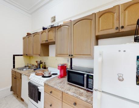 A spacious one bedroom with tall ceilings, large windows, decorative fireplace, a lot of sunlight. Heat and water included, and laundry in building!