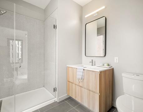 Zero Athens features studio, one, and three-bedroom apartments in a new 55 unit pet-friendly building in the heart of South Boston. The location is unmatched. The MBTA station is just outside your door and you can easily travel into the heart of the city in no time. Inside each unit you'll find an exceptional level of finish with custom closets, built-in storage, quartz countertops, wood flooring, and high end appliances throughout. Our community amenities include a resident lounge with kitchenette and dining area, private work pods, community-wide Wi-Fi, and spacious roof deck with city views, fire pits and grilling stations. If you're looking for an apartment that's a cut above the rest, in a location that has it all, welcome home to Zero Athens.
