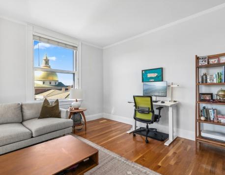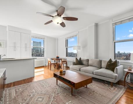 Rare to the market, this oversized 1BR, 1BA Penthouse on the 9th floor corner - has 6 huge windows all with towering views of the State House, the Boston Athenaeum, the Public Garden + Commons, Back Bay + Beacon Hill, and the westward winding Charles River. Carefully renovated and cleverly designed, the home offers hardwood flooring, modern kitchen with breakfast dining, a wide living room with versatile layout and large closets. Originally constructed as the 'Hotel Bellevue' (1899), this world-renowned 11-story building at the tippy-top of Boston's historic Beacon Hill, houses a storied past of notable Bostonians, located just one block from Park St train and 2 blocks from Government Ctr, with immediate access to Financial, Mid-town & Theater Districts, allowing easy access to Charles St, MGH + Whole Foods. TWENTY-ONE BEACON boasts a grand lobby, concierge-staff, on-site professional Mgmt & twin elevators to a sky-line common roof deck with arguably the best sunset vistas in the city!