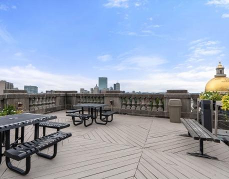 Corner top floor 1-bed facing the Boston Common and the State House for rent. Spacious and bright - this 10th floor unit features an open floorplan with renovated kitchen, dining area, two mounted TVs, refinished and gleaming wood floors and a large walk-in closet - and terrific views from the large windows. With elevators and concierge service with a common roof top and function room overlooking the Boston Common, this building features a beautiful lobby, onsite management, maintenance and laundry on each floor. The standout feature is a next-to-the-unit access to the roof top with amazing panoramic views of downtown Boston and beyond!. With its perfect Walk-Score and located at the heart of Beacon Hill/Back Bay, downtown Boston is at the front door with barely a few steps to Boston Common, MGH, subways, shopping, restaurants, the Financial District, Government Center, and other commuter routes. All utilities (electricity, heat and hot water) are included except WIFI.