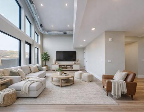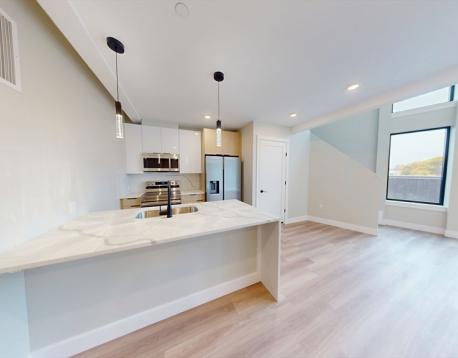 Experience elevated city living in this stunning 1,414-sq-ft luxury penthouse featuring 3 bedrooms and 2 full baths, thoughtfully designed with a modern aesthetic and expansive windows that flood the home with natural light. The open-concept living and dining area flows seamlessly into a sleek, contemporary kitchen with high-end finishes and ample counter space, perfect for both everyday living and entertaining. The spacious primary suite offers a private retreat with an en-suite bath, while two additional bedrooms provide flexibility for guests, a home office, or family needs. Enjoy the convenience of in-unit laundry and the rare bonus of private outdoor spaceideal for relaxing or hostingmaking this exceptional penthouse a perfect blend of comfort, style, and sophistication. The building features bicycle storage, parking available for rent, common roof deck and fully equipped gym. Tenant pays for electricity, water/sewer and internet. First, last, $150 key paid at lease signing.