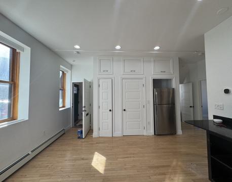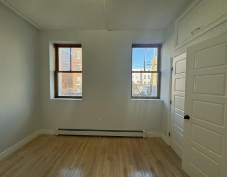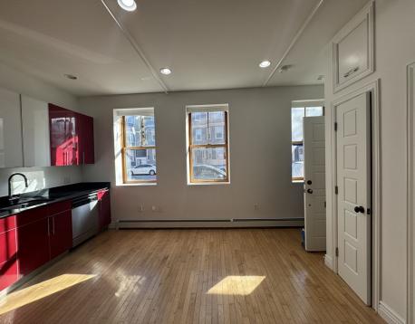 AVAIL NOW/JAN/FEB: First floor unit in classic brick building! Updated 2 bed/1 bath features hardwood floors throughout, a custom kitchen with granite counters, stainless appliances, gas stove, peninsula, and modern red cabinets or make second room a study/ office! High ceilings and lots of windows with deep sills perfect for plants throughout! Front living/kitchen area has large walk-in closet and views of tree-lined street. Rear bedrooms look out to spacious shared yardgardeners welcome! Private laundry + storage in basement. Unit is being freshly painted. One block to Greenway, Airport MBTA, dog park w/ easy access to ferries, highways, trains, and planes for an easy commute. Enjoy close proximity to dining (Santarpios/Pazza), groceries + parks. First months rent, one month security due at signing. Credit 650+ and verifiable income required. Pets negotiable for a fee.