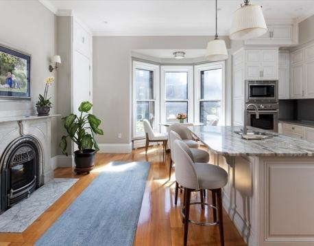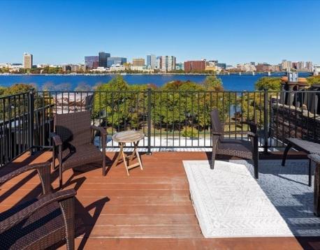 Prime Back Bay Riverside Beacon location! Tastefully renovated 5-bed, 4.5-bath penthouse triplex spanning the 3rd5th floors with exceptional indoor-outdoor living. Elegant living room showcases original architectural detail, soaring ceilings, front and rear bay windows, hardwood floors, and two gas fireplaces blended with modern finishes. Chefs kitchen features granite island, stainless appliances, and breakfast area. Luxurious primary suite offers a wall of windows with stunning water views. Spa-like baths with Waterworks fixtures. Enjoy north and south exposures, a spectacular private roof deck with outdoor kitchen, water feature, and sweeping views of the Charles River, plus a rear-facing deck. Additional highlights include two laundry areas, Lutron lighting/shades, generous closets, and 3-car direct-access parking. Moments to Copley Square, Financial District, Esplanade, and Newbury Street dining and shopping.