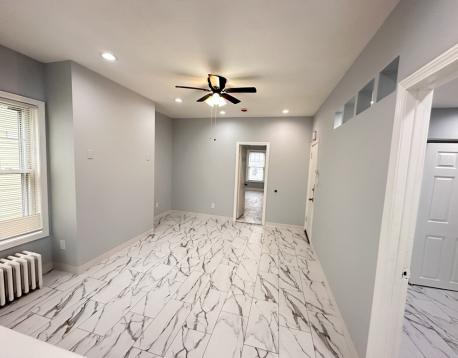 Newly renovated 2.5 bedroom, 1 bath unit located in historic Eagle Hill. This home features brand-new finishes throughout, including gleaming tile floors, quartz countertops, high ceilings, an open living room, and a separate kitchen with ample cabinet space. The additional room can be used as a home office, study, or walk-in closet. Just minutes from Airport Station. Please note: there is currently no on-site laundry, but a laundromat is conveniently located nearby.