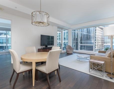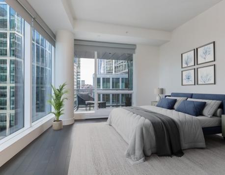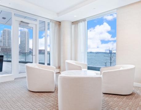 Stunning two Bedroom two Bathroom corner unit at exclusive Twenty Two Liberty! This sun-splashed home boasts 10 foot ceilings and floor-to-ceiling windows with beautiful views of the city and harbor. Unit features include private balcony, hardwood floors, custom closets, motorized window shades, and abundant closet space. The kitchen is meticulously appointed with top of the line appliances by Wolf, Miele, and Subzero. Both bedrooms are generous in size and the primary bedroom captures gorgeous views of the Harbor. En suite primary bathroom boasts Italian marble, soaking tub, glass shower, and double vanity. Twenty Two Liberty offers unparalleled amenities, including 24-hour concierge, a magnificent clubroom with a terrace overlooking the harbor, fitness center, and conference room. Includes 1 Deeded parking space. Unit can be rented FURNISHED or UNFURNISHED.
