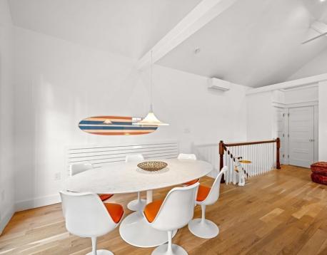 FURNISHED. Available Now. New 2025 renovation upper two floor duplex with direct entrance features approximately 1350 square feet, 3 bedrooms, 2.5 baths, private deck, and PARKING. Flexible lease terms, shorter or longer, please inquire. Entry/first level features primary bedroom suite with private bathroom, and two good sized additional bedrooms with shared bathroom. Upper level features open concept living room and dining room with vaulted ceilings, ceiling fan, and gas fireplace, all open to large private deck with water and electric. The fun, retro kitchen is fully applianced, has tile backsplash and additional seating at the breakfast bar. There is an additional half bath on this level. Fully furnished, all utilities are included, lessee pays for cable tv and internet. Hardwood floors throughout, central air, and in unit washer/dryer complete this wonderful rental offering. 1st MO/1 MO Security due at lease signing. Very close to South Boston's beaches/Carson Beach.