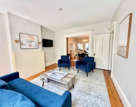 Furnished Short Term Rental. Available 11/19/25-12/31/25. Located on a sought-after gas list street only one block to historic monument square & a short walk to public transportation & Charlestown best restaurants, this 3 bed, 1 bath home offers high ceilings, sought after open layout, abundant natural light and wide pine floors. First fl. has sunny living, large dining, an office, a full bath & kitchen. Upstairs, has a large bed w/ hardwoods & a walk-in, a 2nd bed w/queen, a 3rd bed w/twin & full bath. Common Patio and yard.Charlestown, Massachusetts,, is a historic neighborhood brimming w/ charm & character. One of the oldest neighborhoods in Boston. Its picturesque streets are lined w/rows of historic brick buildings. Charlestown's waterfront location provides stunning views of the Boston skyline. Charlestown offers a vibrant community atmosphere w/ trendy cafes, restaurants & shops w/easy access to downtown Boston via public transportation, making it a popular choice for tho