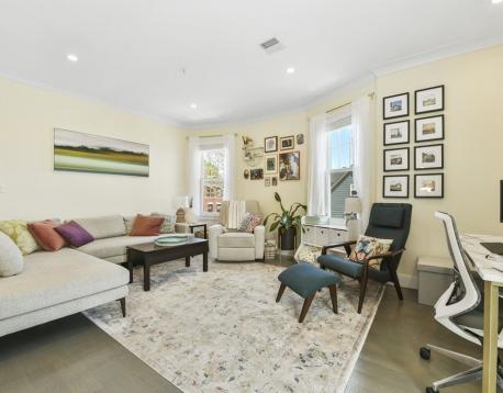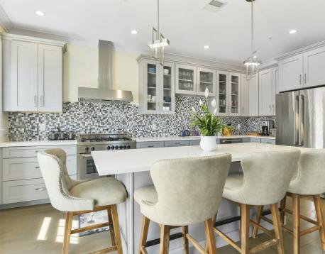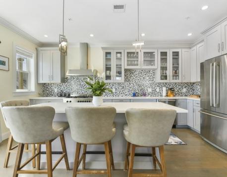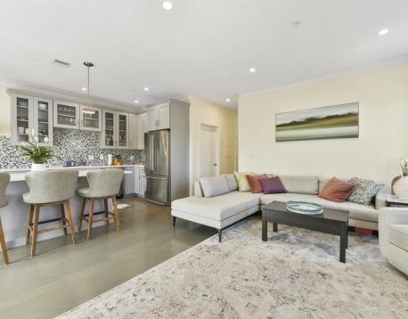 Available April 1st! This beautiful 2 bed, 2 bath penthouse suite is ready for you to call home. Newly renovated kitchen boasts quartz countertops, Bertazzoni stainless steel appliances, crisp grey cabinetry and an oversized island. The kitchen opens into the living room which makes the space perfect for entertaining. Retreat to the primary suite with ensuite bath and walk in closet. Ready to entertain? No problem. You'll have your choice of two outdoor spaces. The first deck you'll find right off the living room and is complete with a gas line ready for you to hook up a grill. Looking for water views? Climb one flight to an oversized roof deck, perfect for entertaining with sweeping harbor views. Top it all off with hardwood floors throughout, central AC, one DEEDED Parking spot and washer and dryer in unit. This is truly a home to settle in comfortably in the heart of South Boston!