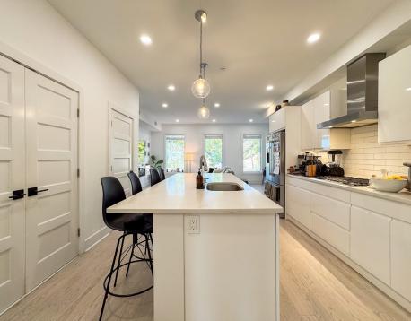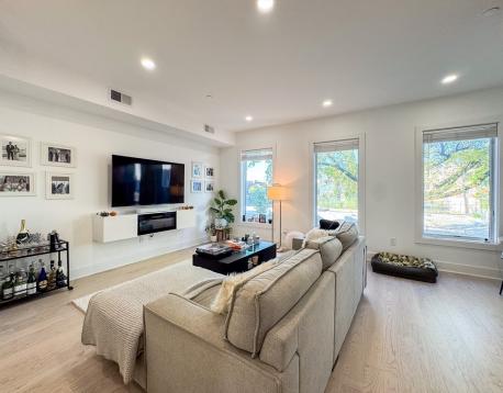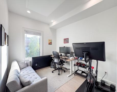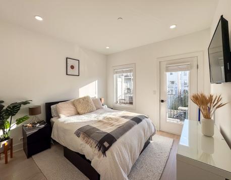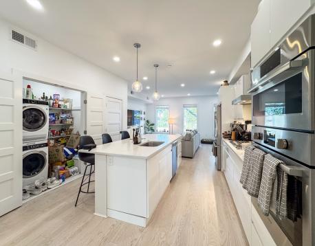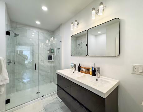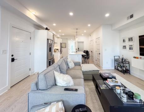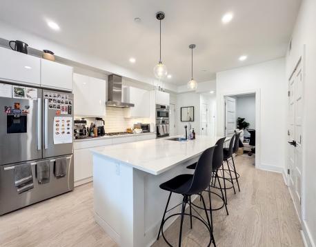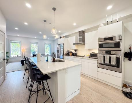 This stunning high-end condo was built in 2021, in East Bostons sought-after Jeffries Point. This second-floor unit features 11 ceilings, large windows, and a spacious open-concept layout with central air, an electric fireplace, and designer finishes throughout. Enjoy a chefs kitchen with quartz waterfall island and premium Bosch appliances. Three bedrooms and two bathrooms, including a primary suite with double vanity, glass-enclosed tiled shower, and walk-out balcony. Garage parking for rent.