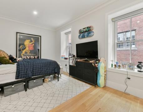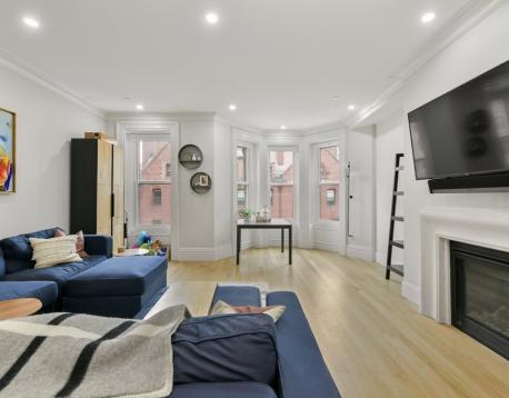 Totally renovated Penthouse duplex in a Back Bay Brownstone. 1,500 SF includes 2 Bedrooms, Office and 2.5 Bathrooms, plus an oversized private roof deck. Fully updated kitchen with high-end stone finishes and premium SS appliances. Classic meets modern with high ceilings, custom closets, and an original fireplace mantel upgraded with modern gas. The office is exceptional, with an oversized skylight providing outstanding natural light. Central AC and in-unit laundry. 2023 condo-quality renovation on a coveted blockperfectly situated between Commonwealth Ave and Newbury Street. Restored and maintained are the moldings, grand foyer and elegant staircase -- Available 5/1.