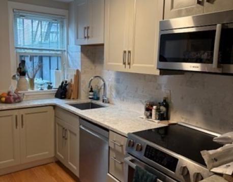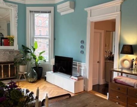 Renovated rental condominium ready for occupancy 4/1/26. First floor: Enter into a gorgeous oval living room featuring a Southern exposure, high ceilings, bay window, ornamental fireplace, period moldings and herringbone-patterned wood floors. Adjacent wet-bar. Renovated powder room. Full staircase down to the garden level: S/S kitchen with adjacent dining area. Two large bedrooms at opposite ends of the floor. Full bath. Multiple closets. Full size W/D. Unit air conditioning. Gorgeous, classic Back Bay building foyer. Professionally managed three unit condominium building. Great location mid-Back Bay. Close to Newbury Street shops and purveyors, some of Boston's finest restaurants, the Back Bay business district, the Charles River and Esplanade, grocery stores, public transportation and major routes.