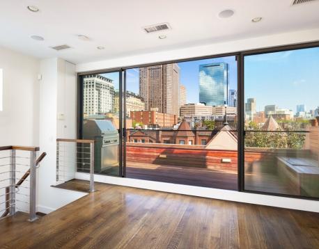 Spectacular South End penthouse triplex 4+ bed with private outdoor space and onsite garage parking! Available JUNE 1, this one of a kind home offers an ideal location along the Southwest Corridor park and a short walk to the Prudential center. Fully renovated 4+ bedroom home offers a large and sunny primary suite with a marble bath and a large walk in closet. This floor also offers two additional full size bedrooms and a shared full bathroom. A Large family room is ideal for lounging and has access to a 4th bedroom with a Murphy bed and another full bath. Penthouse level kitchen/living space has unmatched wow factor with its oversized sliding glass doors that open to a front facing deck with commanding city skyline views! This real Chef's kitchen offers top-of-the-line appliances, stainless counters, gas cooking, wine storage & is ideal for entertaining! Complete with 1 full oversized garage space, first, last & security due at lease signing.