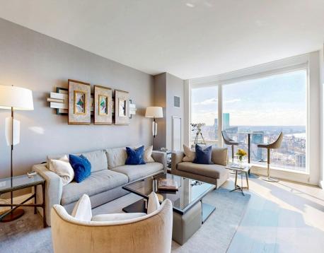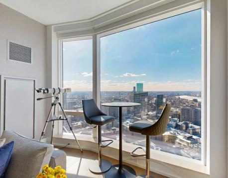 Custom Designed FULLY FURNISHED! Soaring high above on the 45th floor, with 10 ceilings & floor to ceiling walls of glass in every room offering sweeping panoramic South to West Sunset views over The Boston Common, Charles River, Back Bay & beyond. Custom designer furniture and finishes throughout include fireplace with marble surround, built-ins, bar, window treatments, closets, Sub-Zero / Wolf, Induction cooking, Marble kitchen / baths, wide-plank oak floors and more. Winthrop Center combines 5-star services with unparalleled luxurious residential amenities including stunning entry lobby & exclusive vehicle accessed lobby for weather-free arrival & departure. In addition, Winthrop Center offers 8 food & beverage opportunities, next-generation office club & unrivaled live/work amenities including: The 35th floor CLUB with expansive owners lounge; 2 sprawling outdoor terraces, screening room, bar, FLX fitness space, & 75-foot indoor lap pool; Club VIPets, THE COLLECTIVE & more.