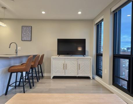 AVAIL NOW - FURNISHED Sunlit Top-floor 2 bedroom, 2 bathroom pet-friendly apartment in a boutique, luxury building overlook Hanover St in the heart of Boston's North End w/ in-unit laundry, central A/C, garage parking & PET FRIENDLY! Floor-to-ceiling windows illuminate the open concept kitchen/living room. The kitchen boasts stainless steel appliances & gas stove. The bedrooms are furnished with a King bed (primary suite) and Queen bed w/Desk & Chair in the 2nd bedroom. Building features attached parking garage, elevator, bike storage, storage locker & keyless entry. PRIME location allows residents to take advantage of many nearby amenities including the Boston Public Market, the Boston Harborwalk, dog parks, cafes & restaurants, a seasonal pool & ice rink, fitness studios, nearby TD Garden and so much more. Access to the T, inner harbor ferry, commuter rail, financial district and MGH are just blocks away. Garage parking & additional storage lockers available for rent.