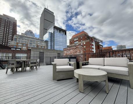 Available Now - Located on Newbury Street in the heart of Back Bay, this duplex penthouse blends timeless elegance with contemporary luxury. Featuring 2 bedrooms, a dedicated office, and 2.5 baths, this residence offers the perfect balance of sophistication, comfort, and convenience. The open-concept main level showcases a designer kitchen with a striking waterfall island, GE Caf appliances, and sleek finishes throughout. Expansive windows frame picturesque views of Newbury Street, filling the living and dining areas with natural light and vibrant city energy. Upstairs, the serene bedroom level includes a spacious primary suite with a spa-like bath and ample closet space, plus a versatile office ideal for remote work or creative pursuits. Escape to your furnished PRIVATE ROOF DECK, an exceptional retreat for entertaining or unwinding amid sweeping city views. Added conveniences include in-unit laundry and FULL TANDEM PARKING for two vehiclesa true rarity in this coveted neighborhood.