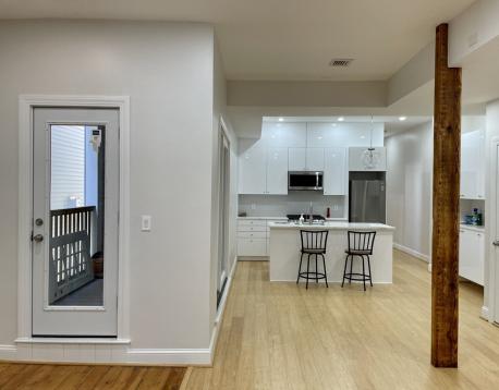 Available September 1st. Experience luxurious living in this beautifully renovated two-bedroom, two-bathroom apartment located in the heart of South Boston. This spacious residence is bathed in natural light and features soaring 9-10-foot ceilings. The expansive open floor plan seamlessly connects the living area to the eat-in kitchen, which boasts stunning countertops, a large center island, soft-close cabinetry, and stainless steel appliances.