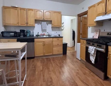 This sun-filled, spacious 4-bedroom, 1-bath apartment in the center of Mission Hill has all the essentials: a large living area, a cozy eat-in kitchen, on-site laundry, a private deck, and access to a shared backyard for outdoor time. Street parking with a resident permit is available. Near major universities, it offers both convenience and an active atmosphere. Professionally managed. Popular with students. No broker fee.