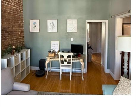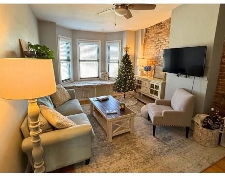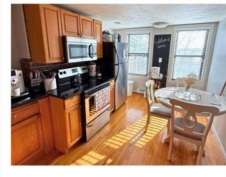 This bright Eagle Hill penthouse is full of character and charm. A vaulted living room features exposed brick and a cozy window seat with room for a desk. Other highlights include hardwood floors and recessed lighting throughout the unit, a split bedroom layout that works well for roommates, and a spacious eat-in kitchen with granite countertops and stainless steel appliances. The bathroom features an updated vanity and tile floor. Enjoy the convenience of free common laundry in the basement and access to a large shared backyard outdoor space to enjoy in warmer months. Easy access to public transit, the airport and all that East Boston has to offer!