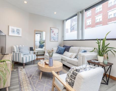 Floor-through over-sized one-bed in the North End with private entrance, high ceilings, and large windows. Spacious kitchen with gas cooking, central A/C, and laundry in the building. Water and sewer are included.. Ideally located in the heart of the North End, close to the waterfront, public transportation, and top restaurants.