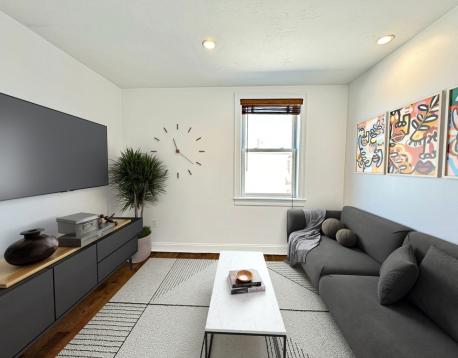 Available for lease starts of 4/15-6/15! PETS OK! Penthouse 2 bed/1 bath located in East Boston's Eagle Hill. A few of the top features of this property are hardwood floors throughout, in-unit laundry, a large modern bath with tons of vanity storage, a modern eat-in kitchen with granite countertops and gas cooking, a large walk-in closet in the primary and both a private outdoor deck with views of Chelsea Creek and also a shared rear yard for summertime barbecues. This property is located walking distance to some of Eastie's top restaurants like Rino's Place and Angela's Cafe, Bremen Street Park anchored by a YMCA and Public Library and Airport T Station, making a downtown commute possible in just 20 mins door to door. Check out the East Boston Waterfront with the popular summer spot, The Tall Ship among other waterfront restaurants like The Smoke Shop, MIDA and ReelHouse. Easy access to I-90/I-93 through the Boston Harbor Tunnels. Tolls for Eastie residents are just $0.20 each way!