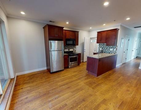 Available September 1st. This Beautifully-Renovated Jamaica Plain 5 Bedroom 3 Bathroom Condo is Sprawled Along Two Levels of Spacious Living!! The Upper Floor Showcases a Granite-Countered and Fully-Applianced Stainless Steel Kitchen with Open Concept Living/Dining Areas w/Glass Slider Leading to a Rear Facing Private Deck. This Level Also Offers Three Large Hardwood Floor Bedrooms- All with Closets, Plus 2 Full Limestone Bathrooms, and In-Unit Laundry Hook-Ups. Downstairs, Renters Will be Amazed by Two Additional Bedrooms, One Half Bathroom, and Bonus Room for Office Space or Additional Dorming. Other Notable Features Include Central Air, Recessed Lighting, and Internet Connections Throughout. On-Street Permit Parking is Available and Small Pets are Negotiable. Just Blocks From Two Orange Lines, Local Restaurants, and the Bikeable SW Corridor Which Traverses Roxbury Community College and Northeastern University. Good Credit and References Required.