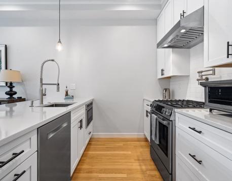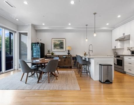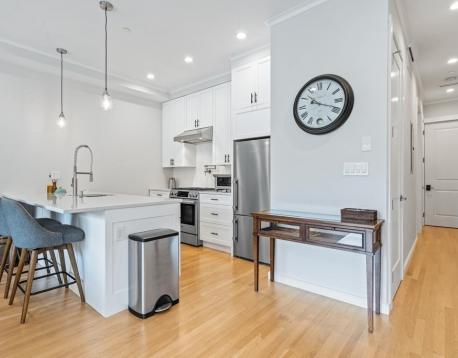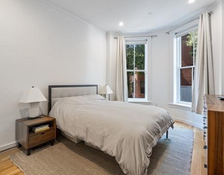 Beautiful 2 bed PLUS OFFICE, 2 bath in the South Ends sought-after Eight Streets neighborhood. This rare parlor/second-floor home is only 1 flight from the sidewalk & offers 10FT+ ceilings. The chefs kitchen features quartz countertops, a peninsula with seating for 4, stainless steel appliances, and Liehber refrigerator. Floor-to-ceiling sliding doors open to a double-wide private deck plumbed with gas, water & electricity that overlooks the Berkeley Gardens. Perfect for grilling, relaxing, morning coffee, or entertaining! King size primary bed features custom walk-in closet, en-suite bath with step-in shower & storage space. Private entrance, central A/C, in-unit laundry, hardwood floors and wired security camera with Ring doorbell complete this home. Enjoy excellent proximity to Restaurant Row, the playground and dog park at Peters Park, Ringgold Park, Copley Square, SOWA, commuter trains and all that the South End has to offer.