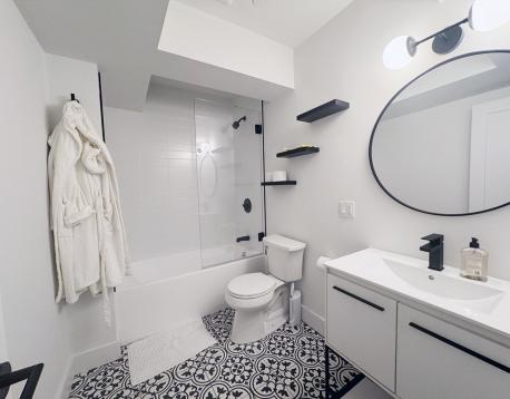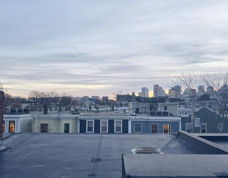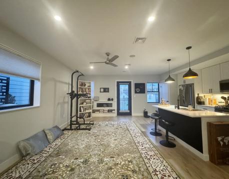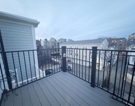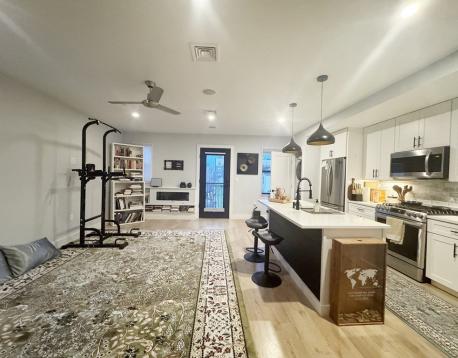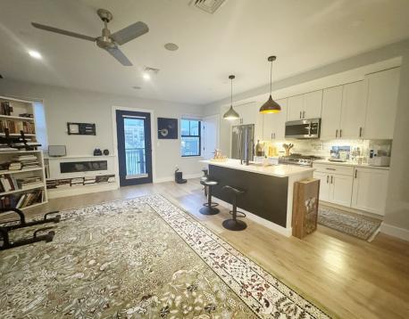 APRIL 1: Penthouse-level 2-bedroom, 2-bath condo in the heart of Jeffries Point, East Bostontruly a unicorn offering with TWO parking spaces, a private roof deck with 360-degree views, a gas-equipped kitchen deck, and deeded storage. The open floor plan is anchored by a custom metal staircase leading to the roof, creating a distinctive single-family feel. The kitchen features a large island, quartz countertops, stainless steel appliances including a wine fridge, and opens seamlessly to the living and dining area with a gas fireplace. The primary suite fits a king bed and showcases exposed brick column detailing, a custom closet system, and ensuite walk-in shower. The second bedroom offers generous closet space. Smart home technology, hardwood floors, and central heat/AC throughout. Just two blocks to the T, Tall Ship, and an array of vibrant restaurants, parks, and waterfront amenities.