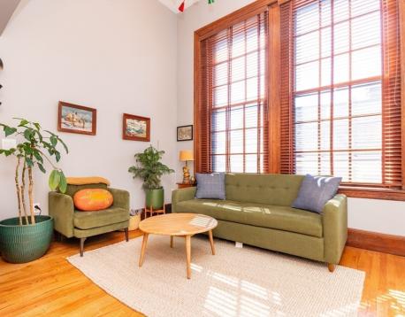 Available December 1, 2025. Dramatic! Stunning! All superlatives apply to this one! Loft style condo for rent in unique historic building conversion in Jamaica Plain. Expansive living room with light flooding in from large windows. Soaring 15 foot ceilings. Three bedrooms and two full baths including en-suite bath in the primary bedroom. Spiral staircase leads to amazing views from the private roof deck. Right in the middle of all Jamaica Plain has to offer. One block from Centre Street shops, restaurants, services and easy access to Green Street T (Orange Line), the Jamaica Pond and Arnold Arboretum. Deeded off street parking and in unit laundry included! Pets allowed!