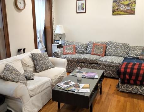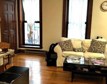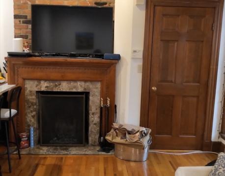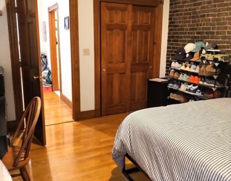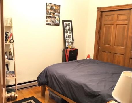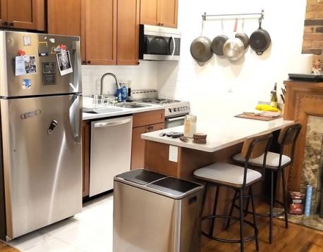 Start the New Year in a beautiful, modern, new apartment! Renovated kitchen and bath with stainless steel appliances and breakfast bar. High ceilings. Exposed brick. Ceiling fans. Private back deck. Hardwood floors throughout. Dishwasher. Nice light. Both bedrooms are equal in size and fit a queen. Lots of cabinet and closet space. Laundry in the building.