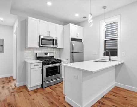 Thoughtfully renovated with sleek and classic lines, this two bedroom plus office delivers luxury living in a smaller and more intimate setting. Nestled in East Boston's Eagle Hill, close to Logan Airport, the Blue Line and the waterfront on the Chelsea Piers, this apartment is conveniently located to get you anywhere you need throughout the city. There is a bounty of nearby shops and restaurants, though the unit comes equipped with a high end kitchen, featuring stainless steel appliances and gas cooking. Tall white cabinets abound, and the large quartz island with overhang is ideal for casual eating. Each bedroom is ample in size, all with large closets. A thir room is ideal flex space for a home office or den. Both bathrooms boast updated finishes, and one holds a walk in shower and the other a soaking tub. Hardwood floors and recessed lighting run throughout. In unit laundry and central air conditioning. A bright and sunny home awaits!