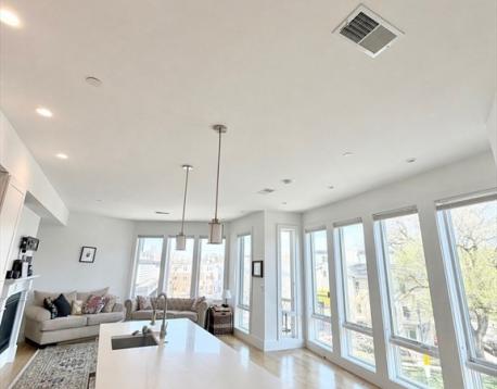 Spacious and sun kissed one bedroom penthouse suite available 6/1. The open floor plan, high ceilings, and floor to ceiling windows make this the perfect place for entertaining guests and everyday living. The contemporary kitchen is a true standout featuring premium KitchenAid appliances. The bedroom has great lighting and a spacious closet with built in organization. A versatile bonus space provides the perfect opportunity for a home office or additional storage. Further highlights include central A/C with NEST thermostat control, in unit Electrolux washer/dryer, a gas fireplace in the living room, and a modern bathroom with a glass enclosed shower. Additional closets are located in the entry way and hallway, offering ample storage throughout. Conveniently located a short walk to the Red Line at Andrew Square, Carson Beach, and numerous popular restaurants and fitness studios.