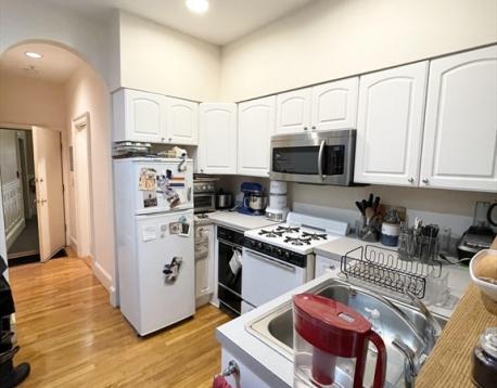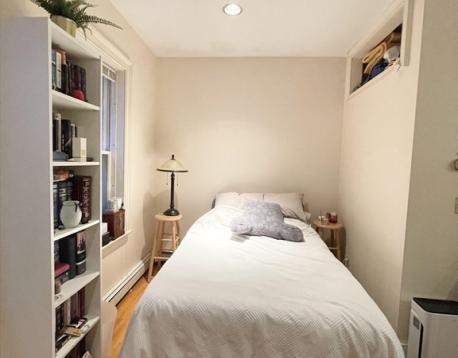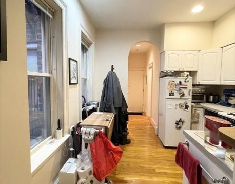 Well laid out studio with full kitchen, large closet and sleeping nook. Raised first floor unit in a professionally managed building. Large kitchen with gas cooking and dishwasher has many cabinets and counter space. Open floor plan allows for varied layouts of furniture. Sleeping nook fits a queen bed. Large closet with an over the closet storage space for luggage. Great flow for single occupancy. Steps to MGH. Common outdoor space and bike storage. No pets. Photos from past and present tenants. Building laundry completes this home.
