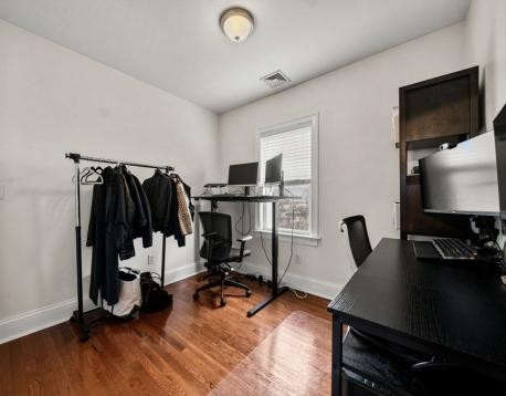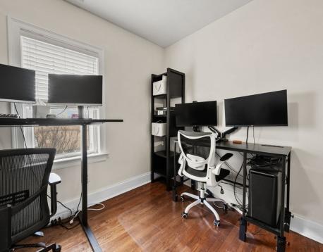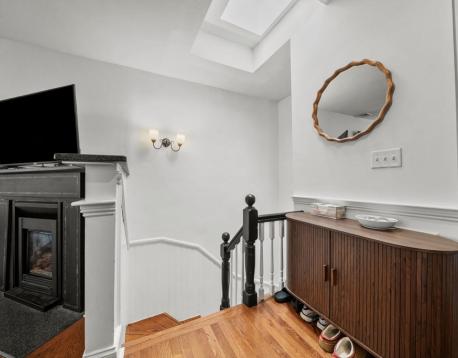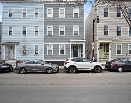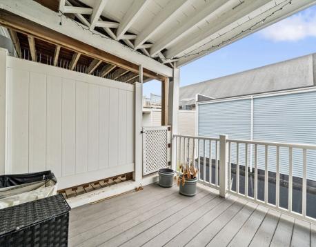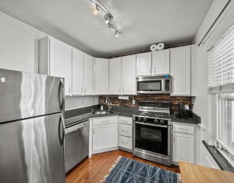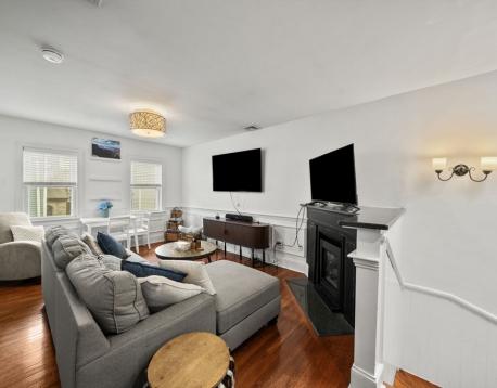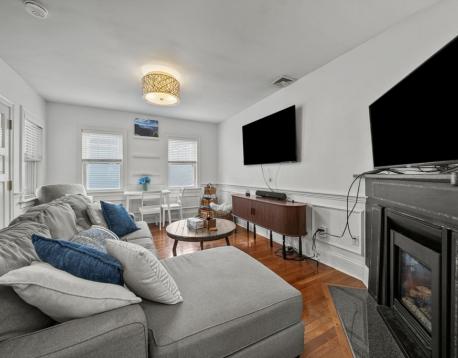 This exceptionally maintained top-floor unit offers a bright, open-concept layout with hardwood flooring throughout. The kitchen is equipped with stainless steel appliances and opens to a sun-filled living room featuring an elegant electric fireplace, creating a cozy inviting atmosphere. Step out onto your private deck ideal for entertaining or relaxing. Both bedrooms offer generous closet space, while additional storage is available in the basement. Complete with central A/C and in-unit laundry, this home blends comfort with convenience. Situated just a half mile from Broadway Station and minutes from I-93 and I-90, it's a commuters dream. Enjoy easy access to South Bostons top restaurants, shops, and vibrant waterfront.