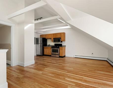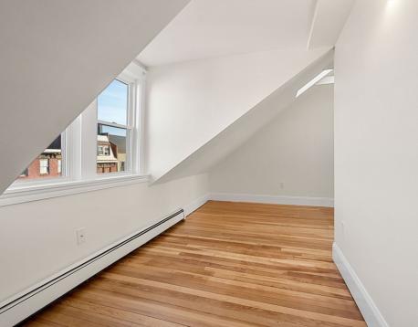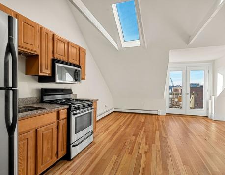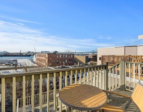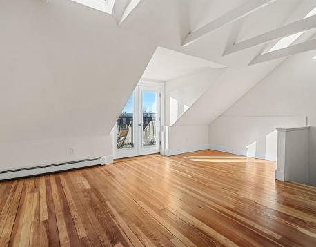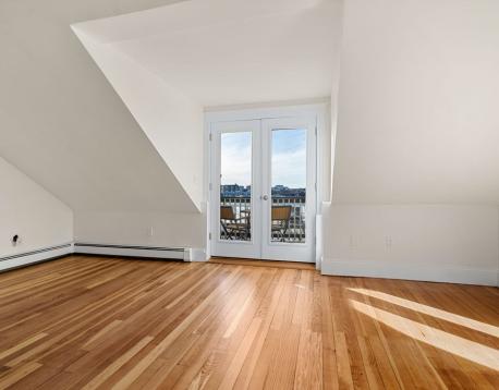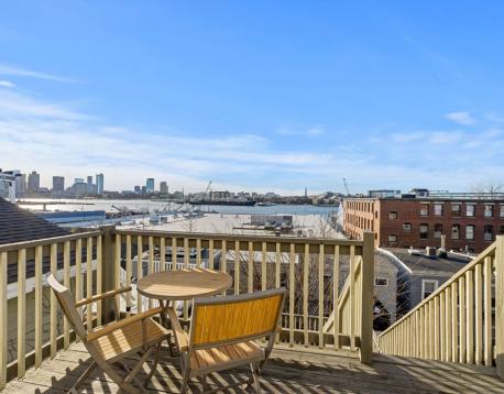 Enjoy stunning views of the Boston Harbor and Charlestown from the living room and private deck of this bright, top-floor condo. The home boasts cathedral ceilings with exposed beams, skylights, beautiful refinished hardwood floors, granite countertops and stainless steel appliances. Located just .5 miles the from Maverick T-station (only two stops from Downtown Boston), this property offers unparalleled convenience with a bus stop right outside the front door and the airport shuttle close by. You will conveniently find a shopping center down the street with stores such as Shaws and CVS. You can not beat the food scene in East Boston, and not to mention, the bustling and stunning waterfront. Come and experience a neighborhood that truly has it all, and views that will make your friends and family envious! Rent includes heat and hot water and gas for cooking. There is a free washer and dryer located in the basement. Please no undergrads, no smoking, no pets.