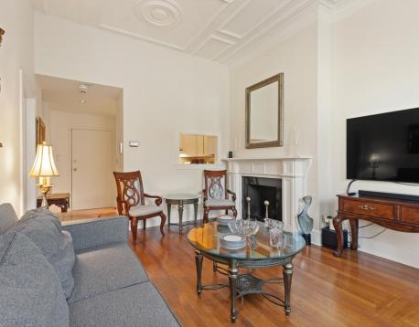 AVAILABLE JUNE 1 | FULLY FURNISHED | FRONT FACING CLASSIC COMMONWEALTH AVENUE 1BR | This second-floor condo in a well maintained association is being offered fully furnished! Enjoy living directly on the Commonwealth Avenue mall moments to Newbury Street and all of Back Bay's shops and restaurants. The condo boasts 14ft ceilings with original molding, decorative marble FP, hardwood floors throughout and pass through kitchen. The queen sized bedroom offers generous closet space. Common laundry. Sorry, no pets.