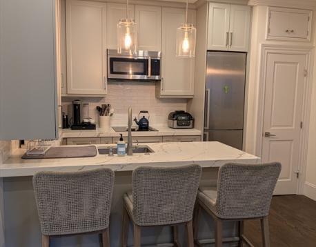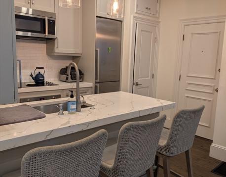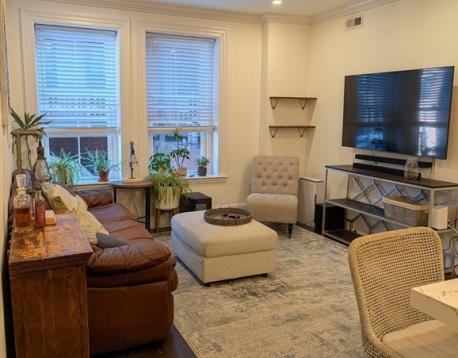 South End FURNISHED rental on Wellington Street! This totally renovated 2 bedroom 1 bath 2nd floor unit features a great layout with no wasted space. Custom kitchen with breakfast bar, stainless appliances including a dishwasher and quartz counters. Open to the living room with hardwood floors and coat closet. LAUNDRY IN UNIT! Renovated bathroom with great marble shower with rain head option. 2 bedrooms both with hardwoods and custom closets (one currently with pull out couch and desk). Common roof deck currently under construction. GREAT South End location off Columbus Ave with easy access to the T and all the South End has to offer! Available now, lease to 8/31/26.