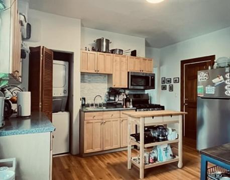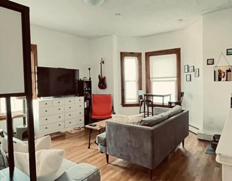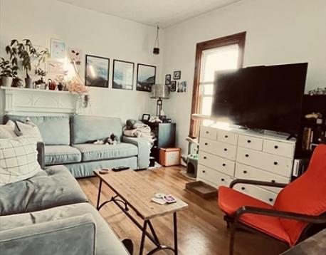 Charming two-bedroom, one-bath apartment featuring a modernized kitchen equipped with a dishwasher. Both bedrooms are well-proportioned and offer generous closet space. The bright living room is flooded with abundant natural light through multiple windows. An in-unit washer and dryer add everyday convenience. Enjoy a private rear deck along with access to a shared yard. Ideally located near parks, shops, and public transportation, including the Green Line MBTA.
