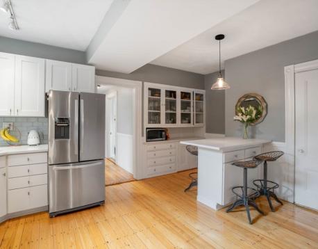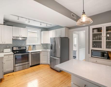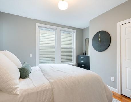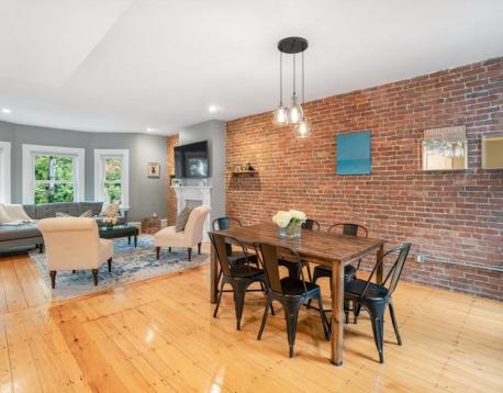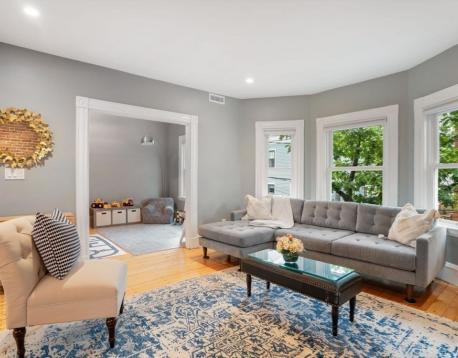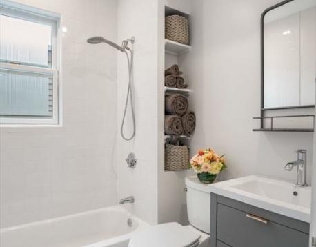 Located on a tree lined street, this spectacular 3+BR/2BA condo offers 1,300+sf of light filled living space on one floor, blending historic details and modern amenities. The spacious and open main living space features a living/dining great room with bay window, exposed brick wall, and pumpkin pine floors, which flows into a renovated chefs kitchen with white shaker cabinetry, stainless appliances, quartz countertops, peninsula with bar seating, and pantry. A bonus room, perfect for a home office or playroom, is tucked off the living space. A corner exposure bedroom and an adjacent, chic, full bath w/Moroccan inspired tile floor and shower w/subway tile surround, and two additional bedrooms, overlooking mature trees, and a full bath with tub and gray vanity complete this offering. Amenities: C/Air, in-unit W/D, private storage, and an expansive common roof deck featuring two seating areas and a dining space w/views of the Boston skyline. Available 6/1. Pets on a case by case basis.