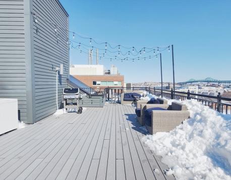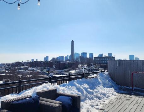 Built in 2018, this stunning top-floor corner unit at The Lumen offers 2 bedrooms and 2 full baths with dramatic city views and abundant natural light. Featuring soaring ceilings, wide plank oak flooring, and a thoughtfully designed open layout, this home blends modern luxury with everyday functionality. The custom kitchen boasts JennAir stainless steel appliances, quartz countertops, marble backsplash, gas cooking, and sleek cabinetry. The living area includes built-in entertainment storage and expansive windows framing views of Boston and the Bunker Hill Monument. The spacious primary suite offers custom closet systems and a beautifully appointed en-suite bath. The second bedroom is ideal for guests, office, or nursery, complemented by a full second bath. In-unit washer/dryer and central air complete the home. Additional highlights include garage parking, elevator access, professional management, fitness room, bike storage, and an impressive furnished roof deck with gas grill and