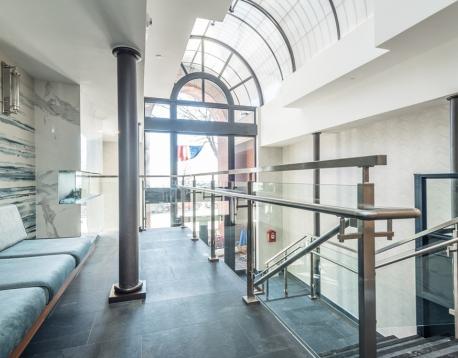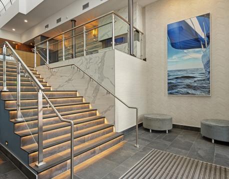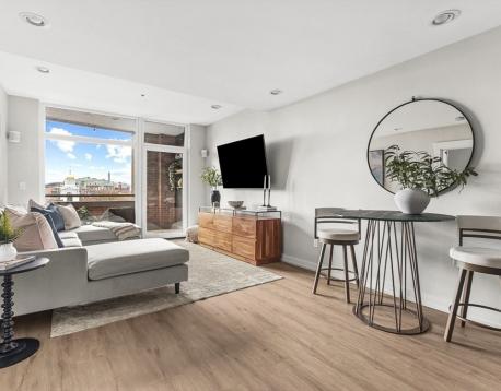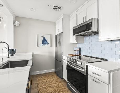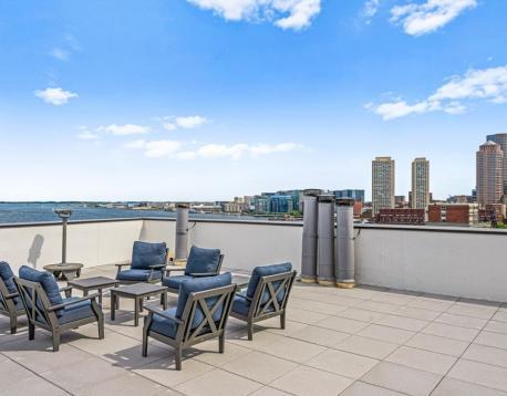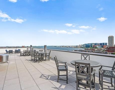 Newly renovated Waterfront home featuring floor-to-ceiling glass, PLUS room, walk-out private balcony with City and North End views. An ideal floor plan offering open living and dining area with direct access to outdoor space, recessed lighting, and hardwood floors throughout. Open kitchen with updated cabinetry, stone countertops, and stainless steel appliances. Master bedroom with additional City views and large walk-in closet. Bathroom offers updated vanity, custom tile work, and shower/tub combination. Bonus Interior second bedroom currently used as an office. Washer/Dryer, Sonos Sound, and Central Air. The Mariner is a full-time concierge building that features a new residence lobby, updated hallways, new roof, private garage, and common roof deck expansion with Harbor and City views. Located on the primary footpath of the Waterfront and next to the Historic North End, Greenway, Seaport District, Financial District, Faneuil Hall, Downtown Boston, and all major transportation point